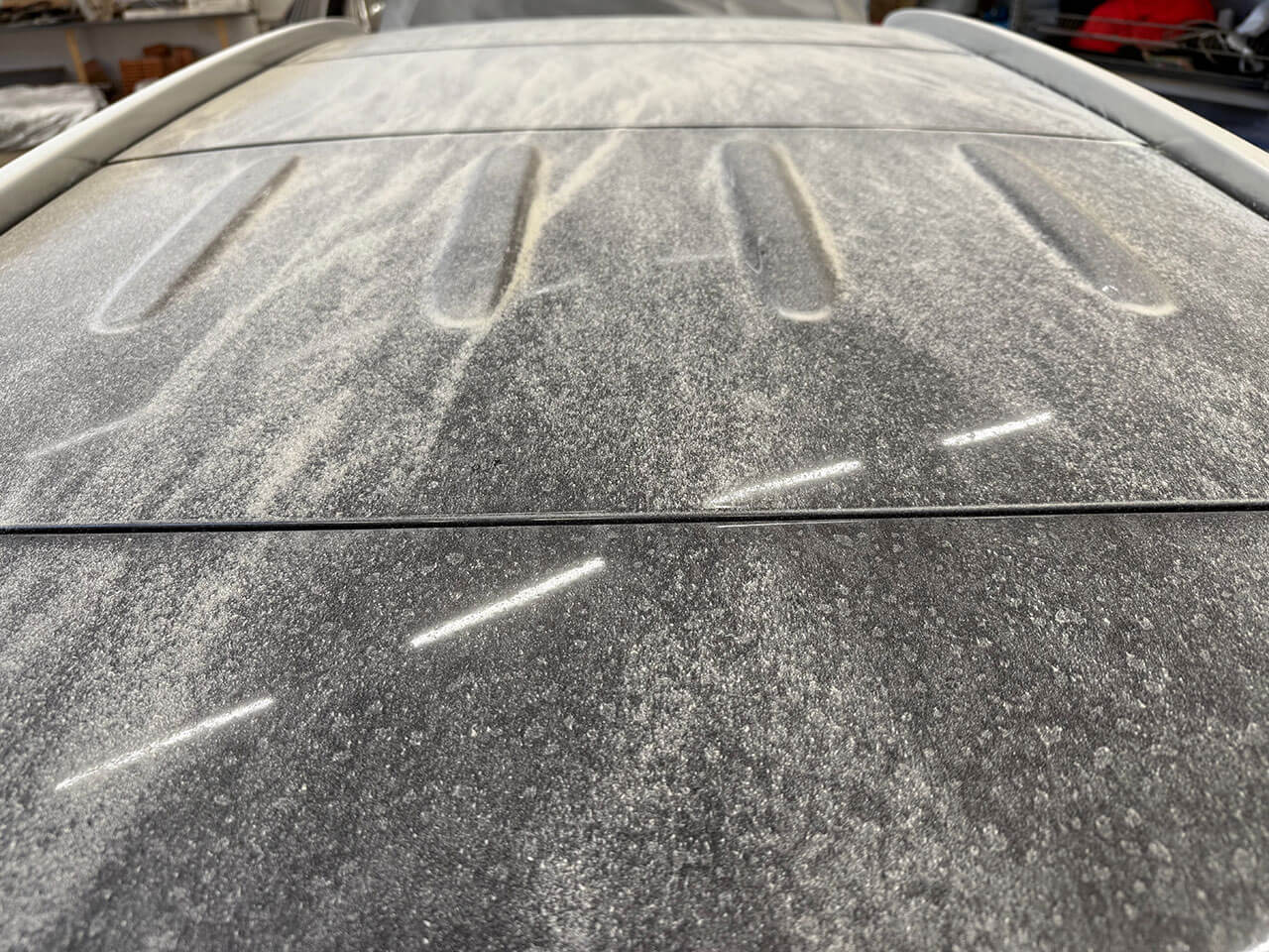 Was wie ein technisches Problem klingt, ist in Wahrheit ein Paradebeispiel für systematische Verschleppung: Ein Fahrzeug wurde durch Vandalismus mit Löschstaub massiv kontaminiert – kein Brand, aber flächendeckende Zerstörung durch feinstverteilte, stark alkalische Partikel. Der Wagen wurde rechtzeitig gesichert und trocken abgestellt. Doch statt schneller Hilfe kam: nichts. Wochenlang keine Freigabe, keine Entscheidung – nur das übliche Spiel: Man will Zeit schinden. Erst wurde ein Sachverständiger bestellt, dann musste das Gutachten „intern geprüft“ werden – obwohl es aus dem eigenen Lager stammt. Währenddessen setzte sich die Kristallisation am Fahrzeug fort. Steuergeräte, Lüftungskanäle, Hohlräume – überall Verquarzung. Jeder Tag ohne Sanierung bedeutete Substanzverlust.