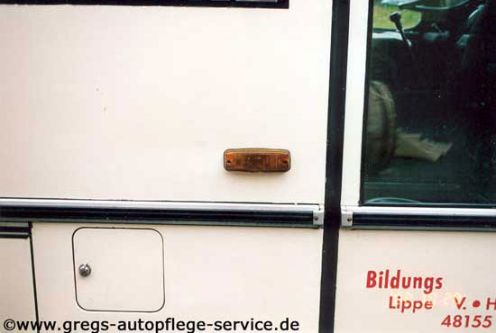 Doch nun zurück zum Bus. Ein Problem, das der Geschädigte hatte, war, dass sein Versicherer es ablehnte, die Kosten für die Zweitlackierung und den Austausch der Glas-, Kunststoff, Gummi- und Alu-Teile zu tragen. Zumindest war hierfür eine große Eigenbeteiligung des Geschädigten vorgesehen. Da der Bus einige Jährchen auf dem Buckel hatte, sollten die Kosten von fast 6.000,00 € nur in zu einem geringen Teil übernommen werden. Daher war der Geschädigte schon sehr erleichtert, als wir ihm die Übernahme des Reinigungsauftrags bestätigten.